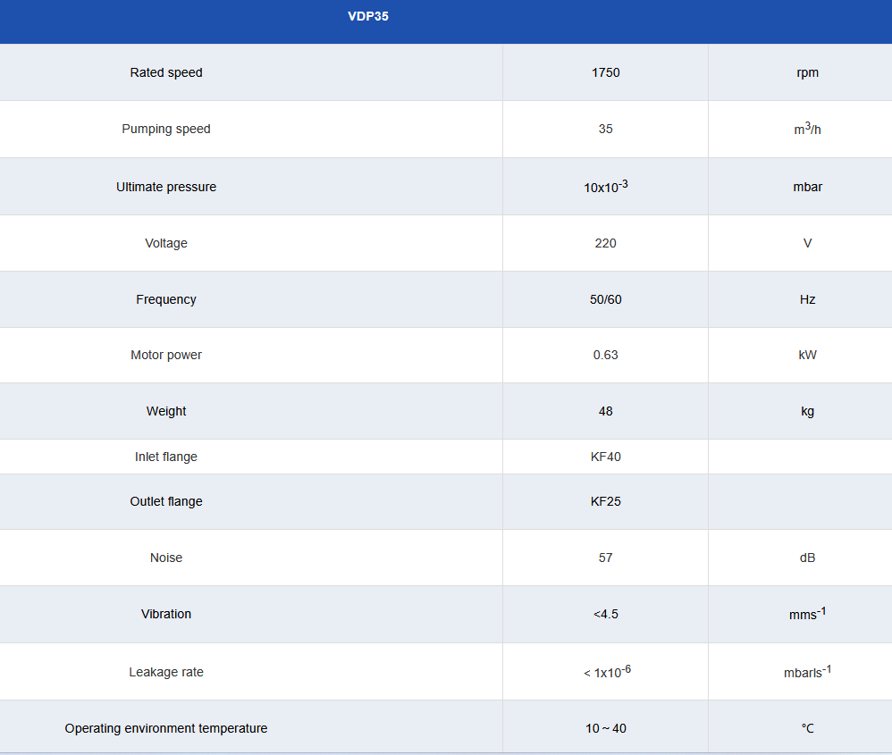 The pumping speed can reach 35m ³/h, CE certification, and 3-year warranty.
